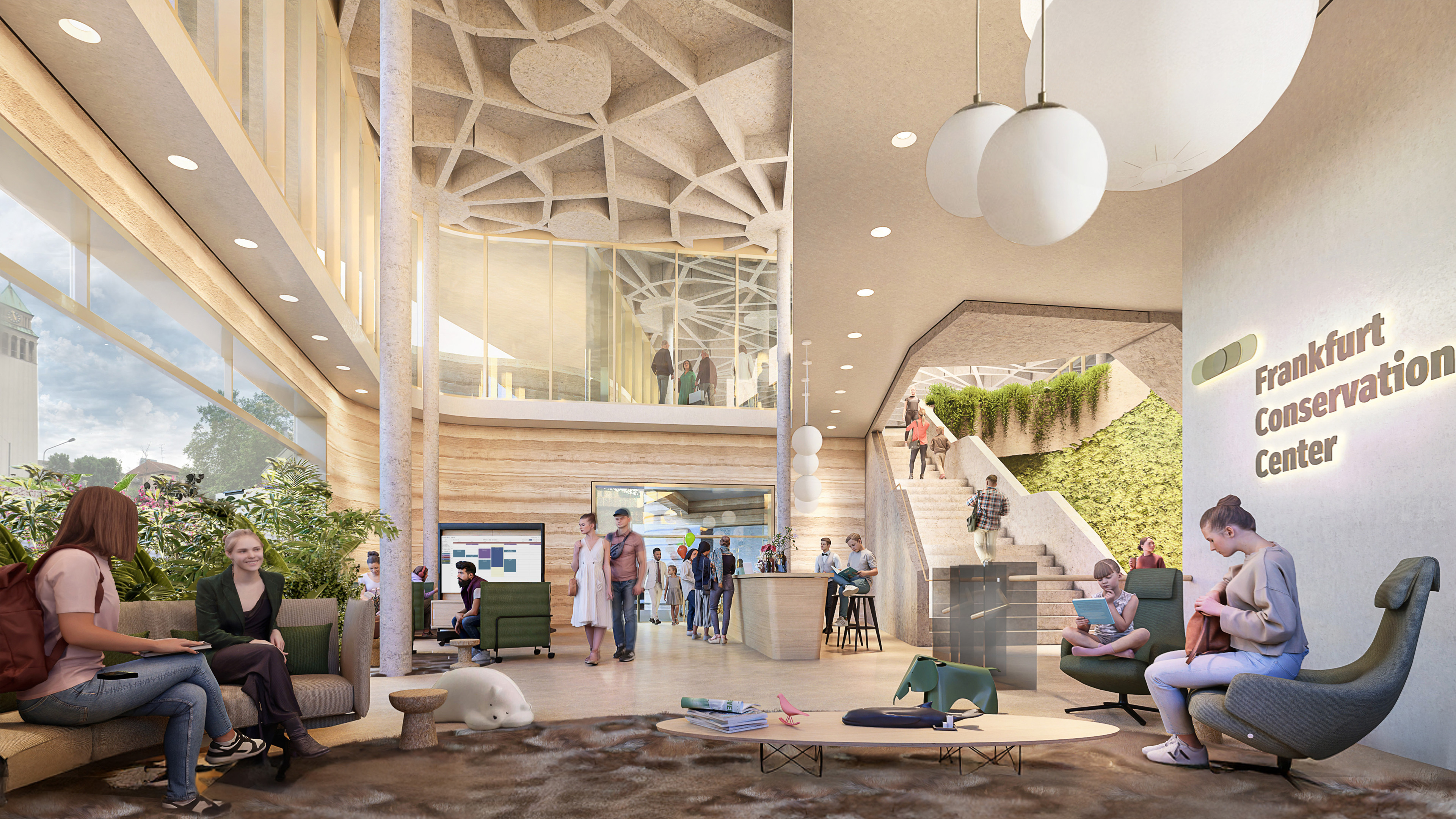 Der Beitrag von FRANKEN erzielte den 3. Preis im eingeladenen Realisierungswettbewerb. Für das FCC der Zoologischen Gesellschaft Frankfurt wurde ein Entwurf entwickelt, der das Gebäude als Urban Cliff versteht – als vielschichtigen Baukörper, der aus Schichtung, Erosion und Sedimentation hervorgeht und ökologische wie räumliche Prozesse sichtbar macht.