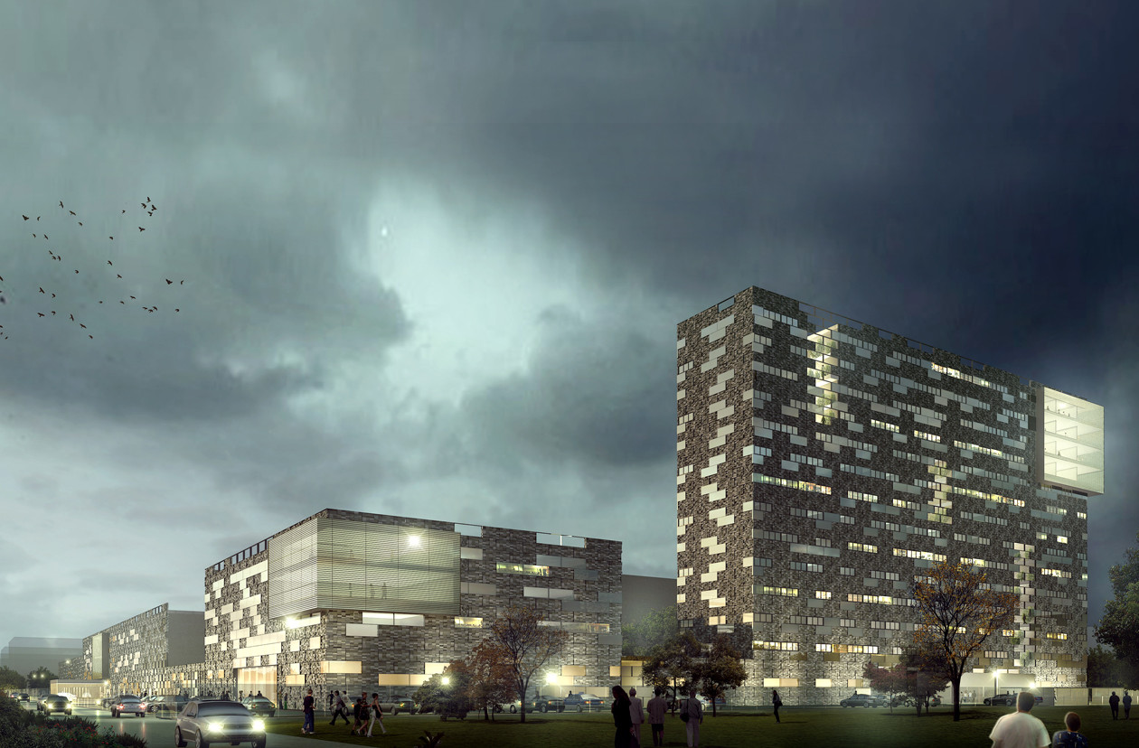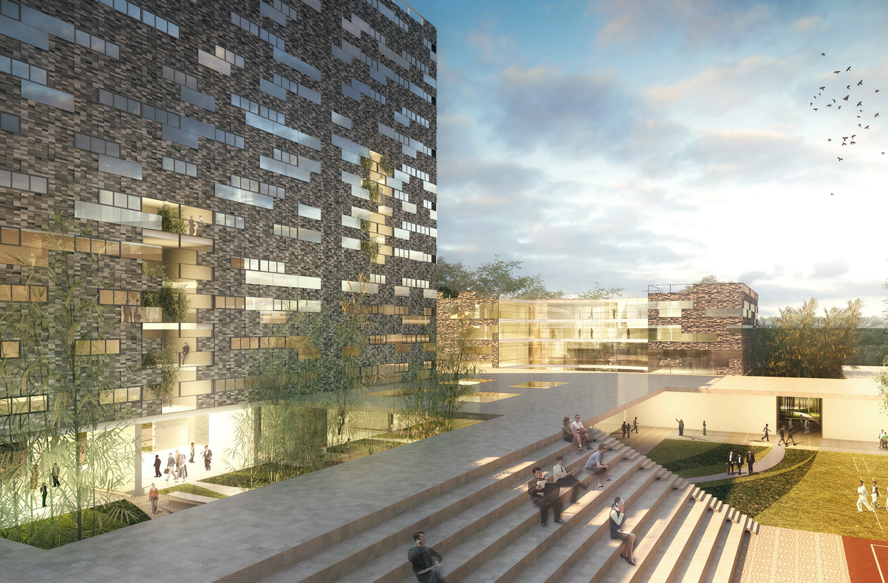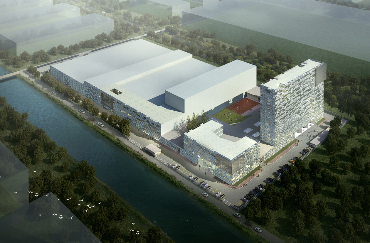 IDEAL ist ein Hersteller von Duschabtrennwänden mit Firmensitz in Foshan in der chinesischen Provinz Heilongjiang, nahe Guangzhou. Der Entwurf für das IDEAL Headquarter umfasst eine Fertigungshalle, nebst Qualitätsprüfung, ein repräsentatives Verwaltungsgebäude, ein Mensagebäude, diverse Einrichtungen für sportliche und soziale Aktivitäten, einen Kindergarten und einen elfgeschossigen Wohnkomplex mit 262 Wohneinheiten für Angestellte. Teil des Entwurfs ist die Integration einer bestehenden Fertigungshalle in das Gesamtkonzept des Neubaus. Die Planung sieht ein durchgängiges Fassadensystem vor, das den gesamten Komplex umschließt und so zum identitätsstiftenden Merkmal wird. Es setzt sich aus Klinker-Elementtafeln zusammen, die einem parametrisch erstellten Muster folgen. Dieses schafft über die Gesamtabwicklung der Fassade einen graduellen Übergang der Körnigkeit von geschlossenen zu offenen Zuständen. Die sozialen Bereiche des Komplexes werden von einer Dachstruktur beschützend überdeckt, die von einem System von Grün- und Wasserflächen durchdrungen ist und so hohe Aufenthaltsqualität bietet.