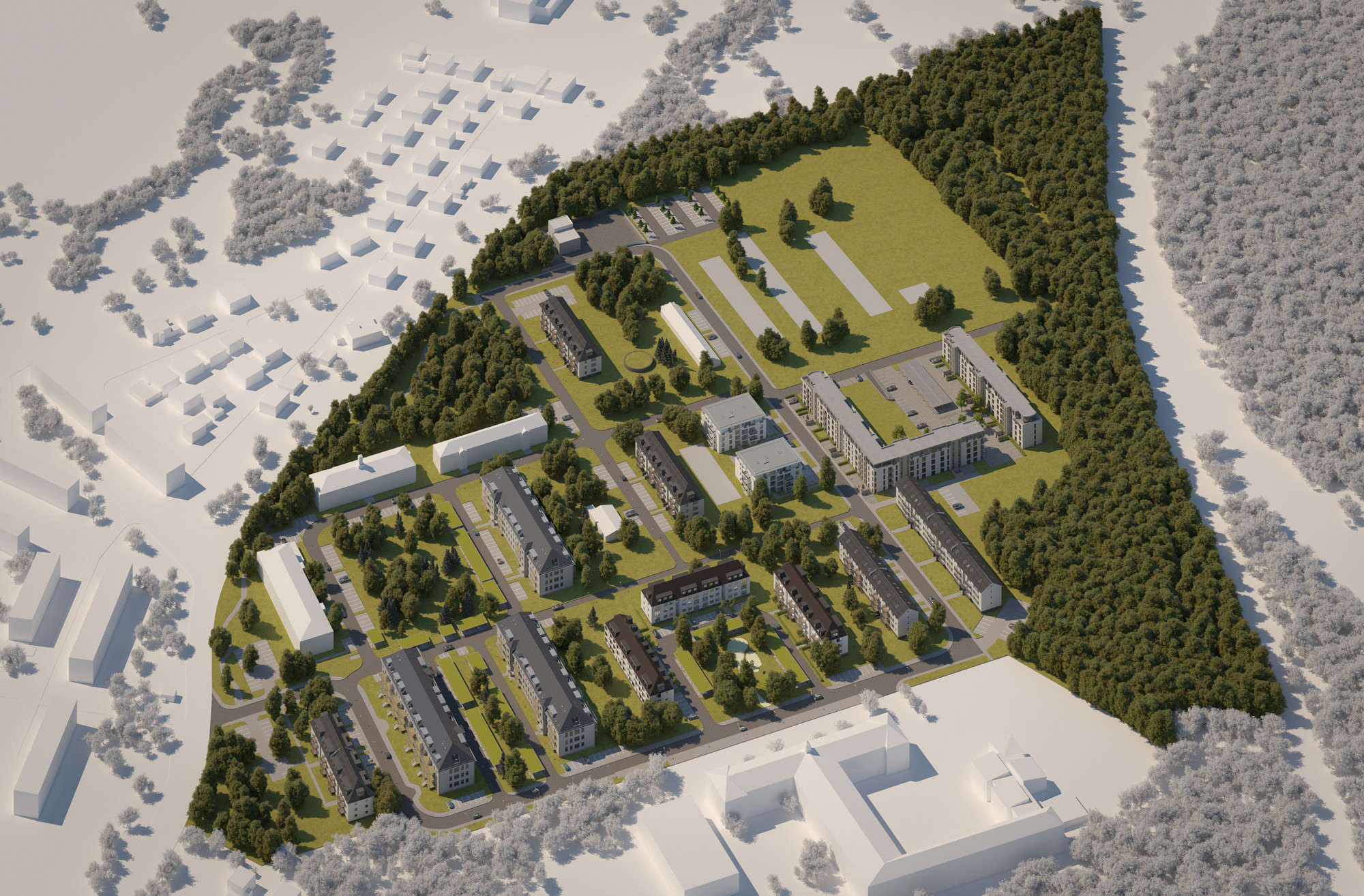 Mit dem „Lehrhöfer Living“ Projekt wurde ein weiteres großes "Bauen im Bestand" Projekt von FRANKEN fertiggestellt. Auf dem Areal der ehemaligen „Alten Argonner-Kaserne“ in Hanau Wolfgang entstand ein besonderer Geschoßwohnungsbau in einem denkmalgeschützten Bau aus dem Jahre 1938. Durch eine umfassende Kernsanierung und Erweiterung wurden in dem ehemaligen Offiziersgebäude die Details des historischen Bauwerks wieder herausgearbeitet. Mit zeitgenössischen Ergänzungen und Materialien wurde das Gebäude mit 46 Wohnungen von ca. 54 bis 124 m² nach heutigem Komfort zu einem hochwertigen Wohnen im 7 ha großen Park Areal verwandelt. Sämtliche der hellen und großzügig geschnittenen Wohnungen bieten mit Balkonen oder Loggien einen Blick ins Grüne. Beide Hauseingänge verfügen über einen Aufzug und sind somit barrierefrei. Die Baustellenarbeiten sind fast abgeschlossen und die Wohnungen im ersten Quartal 2021 bezugsfertig.