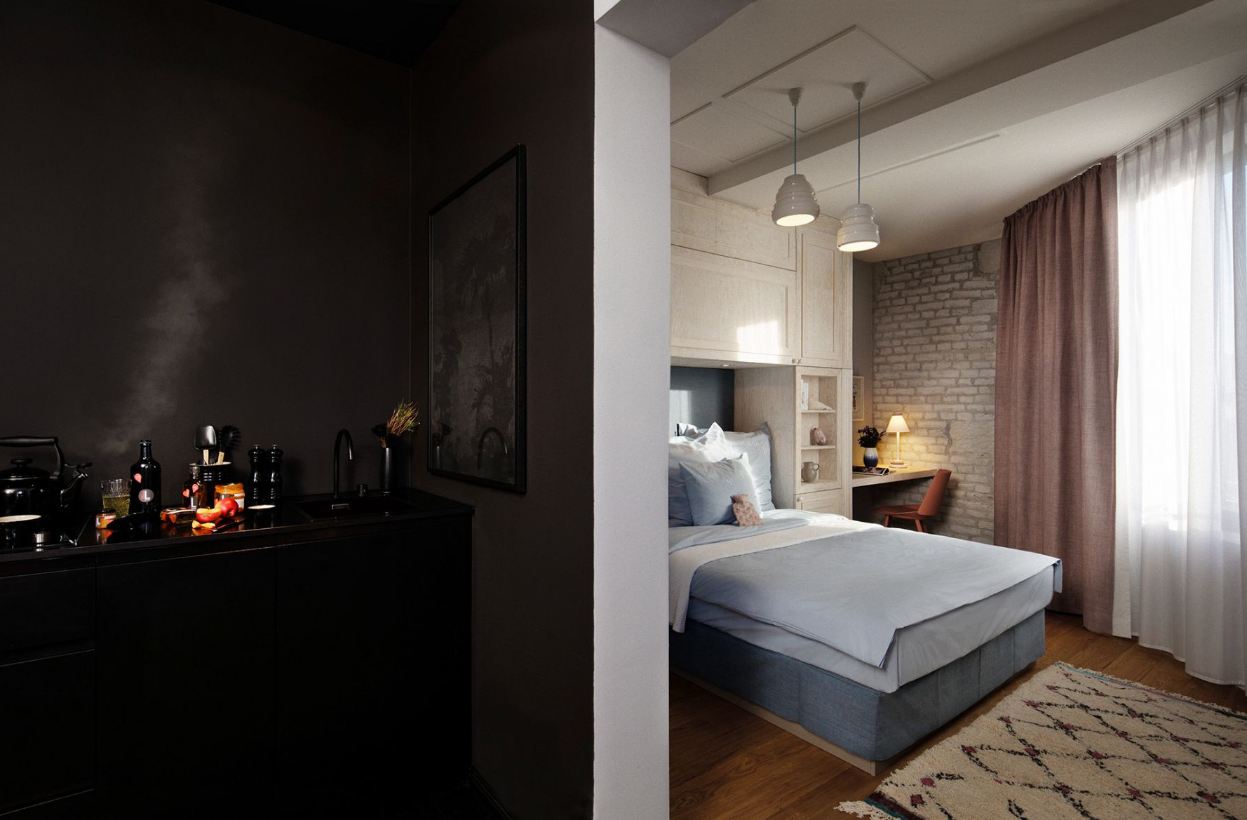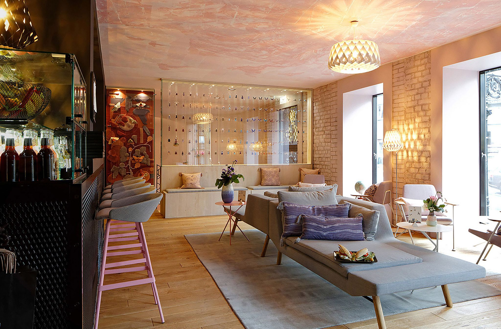 LIBERTINE LINDENBERG erstreckt sich über sieben Etagen. Im Untergeschoss befinden sich ein Tonstudio, das die Türen für gemeinsame Jam Sessions, Konzerte und Filmvorführungen öffnet, sowie ein Turnstudio. Im Erdgeschoss liegen Büroflächen und ein öffentliches Wohnzimmercafé. Im Dachgeschoss befindet sich eine Gemeinschaftsküche und ein Esszimmer mit pittoreskem Blick über die Dächer von Alt-Sachsenhausen und das LEKKER Tante-Emma-Lädchen, in dem sich die Hausbewohner kulinarisch versorgen können. Über die Etagen verteilt gibt es 27 Ein- bis Dreizimmersuiten, sechs davon erstrecken sich im Neubau als Maisonetten über zwei Geschosse.