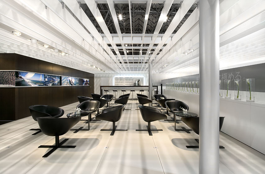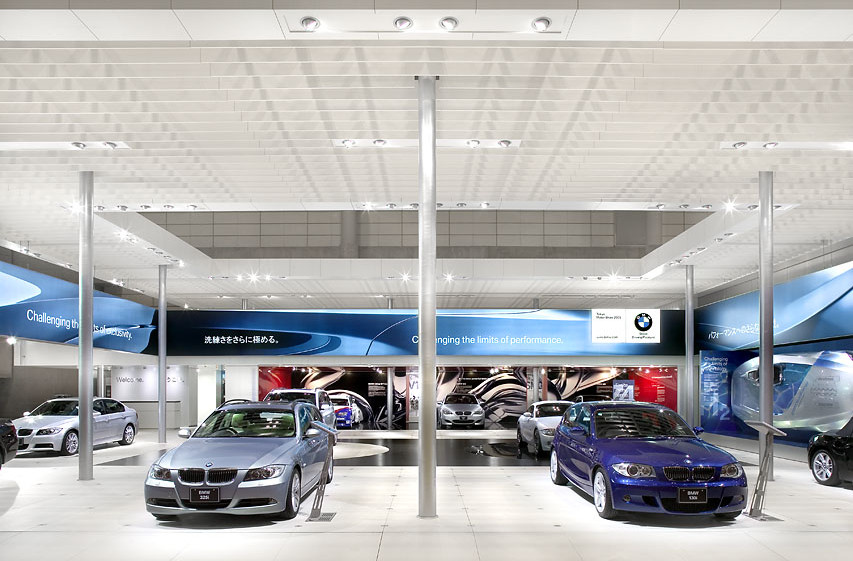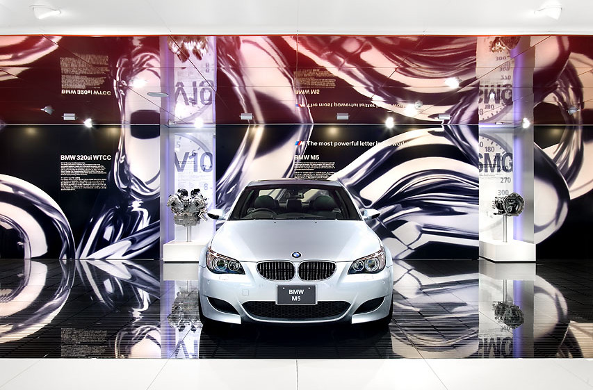 Das neue Prinzip der markentypischen Architektur von BMW basiert auf der klassischen Moderne mit orthogonaler Schichtung von raumbildenden Scheiben, in denen durch das dynamische und zeitbasierte Besuchererlebnis ein „fließender Raum“ entsteht. Eine große Deckenscheibe schließt den Raum nach oben ab und schafft ein großzügiges und gleichzeitig intimes Raumerlebnis. Die Inszenierung der Architektur hebt die Premierenfahrzeuge durch die zentrale Position der Deckenöffnung und den Bodenbelag hervor.