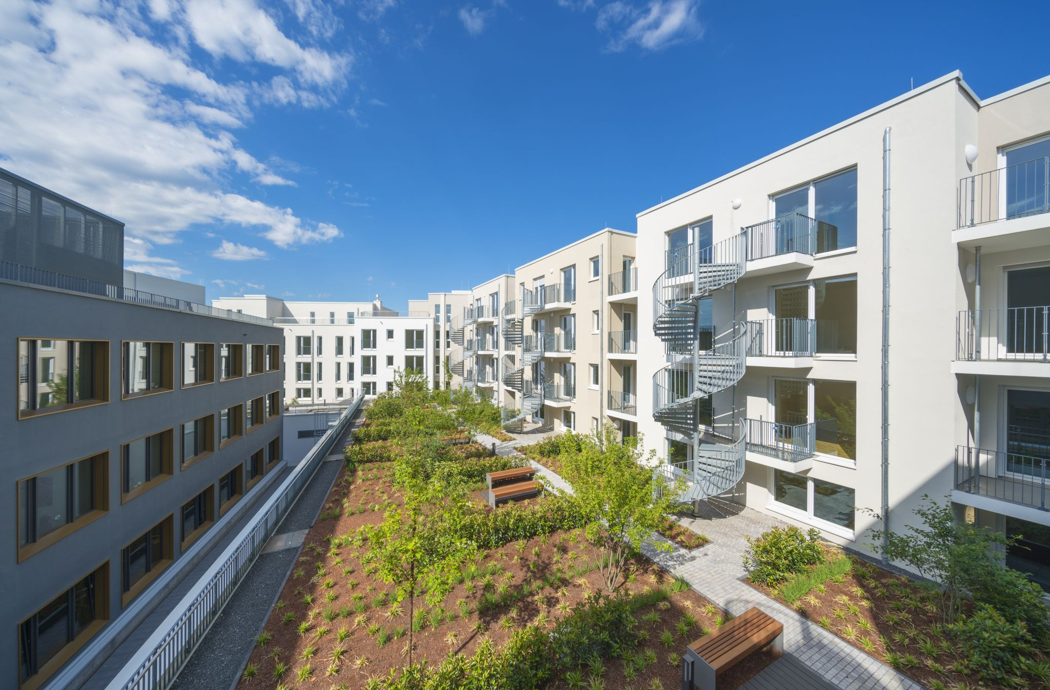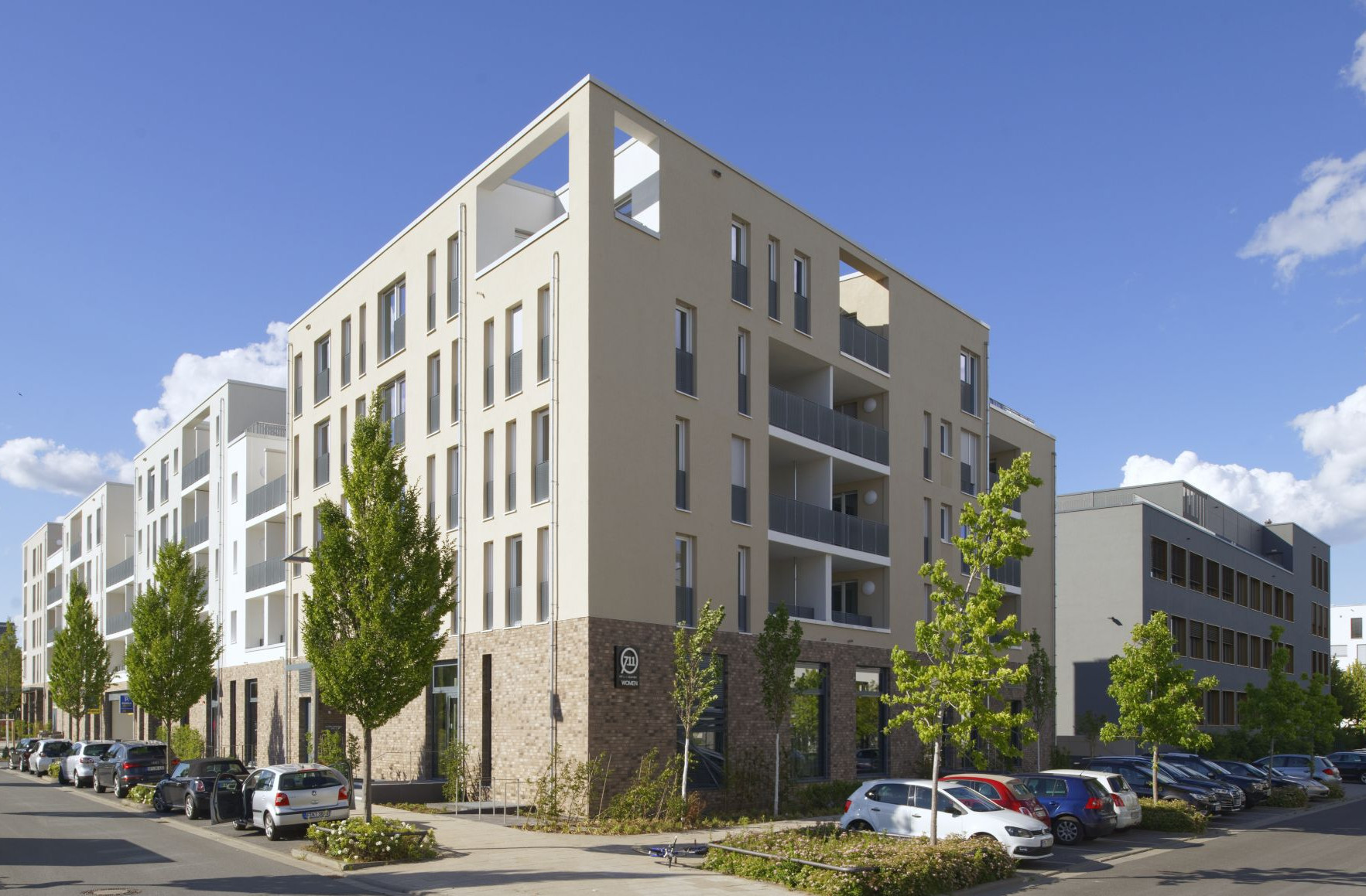 Für das repräsentativ gelegene Baugrundstück am Frankfurter Riedberg hat FRANKEN in einer Arge mit Berghof + Haller Architekten im Auftrag von Groß & Partner einen Geschosswohnungsbau zur Miete und Gewerbeflächen im Erdgeschoss geplant. Der Entwurf wurde bis einschließlich Leistungsphase 8 in enger Abstimmung mit dem Bauherrn und den städtischen Vertretern begleitet. Die ABG FRANKFURT HOLDING hat das Gebäude erworben und ist Vermieter der 97 Wohnungen.