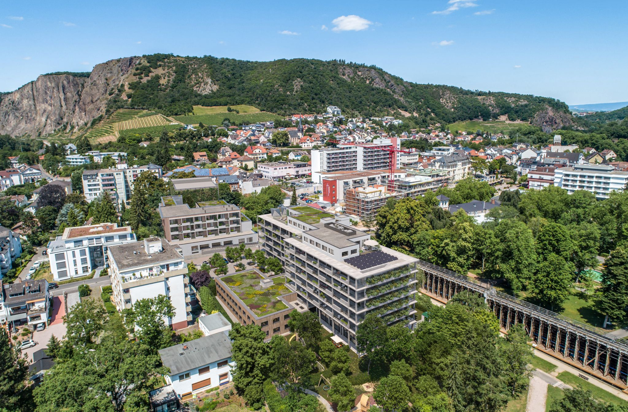 Aus der monothematischen Kurkliniknutzung entsteht ein gemischtes Quartier. An der Kurhausstraße bildet ein Quartiersplatz den Mittelpunkt der Entwicklung. An dem Platz liegt ein Nahversorger mit digitalen Einkaufsmöglichkeiten, Gastronomie, Arztpraxen und eine Kita. Das Mobilitätskonzept nimmt den fahrenden und ruhenden Verkehr aus der Kurhausstraße und bündelt ihn, zusammen mit Car-Sharing, E-Ladestationen für Automobile und E-Bikes in einem Mobility-hub. Unterschiedliche Wohnformen für Familien, Senioren, gefördertes und gehobenes Wohnen mit Penthouse- und „Townhouse“-Wohnungen auf zwei Ebenen, sowie Ferienwohnungen sorgen für eine lebendige Mischung.