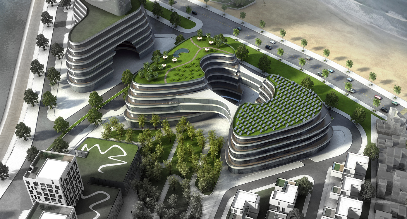 "U-Sea City" ist ein Stadtviertel nahe des Zentrums der Küstenstadt Nha Trang. Das Baugrundstück zwischen Flussdelta und Meer ist durchgezogen von einem mäandrierenden Erschließungsnetz, dass an einen sich verästelnden Flusslauf erinnert. Dazwischen betten sich Hotel Apartments und ein Villenviertel. Wie bebaute Inseln bieten begrünte Sockelgeschosse Platz für Geschäfte, Restaurants, Bars und Cafés.